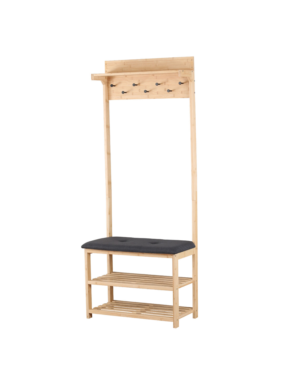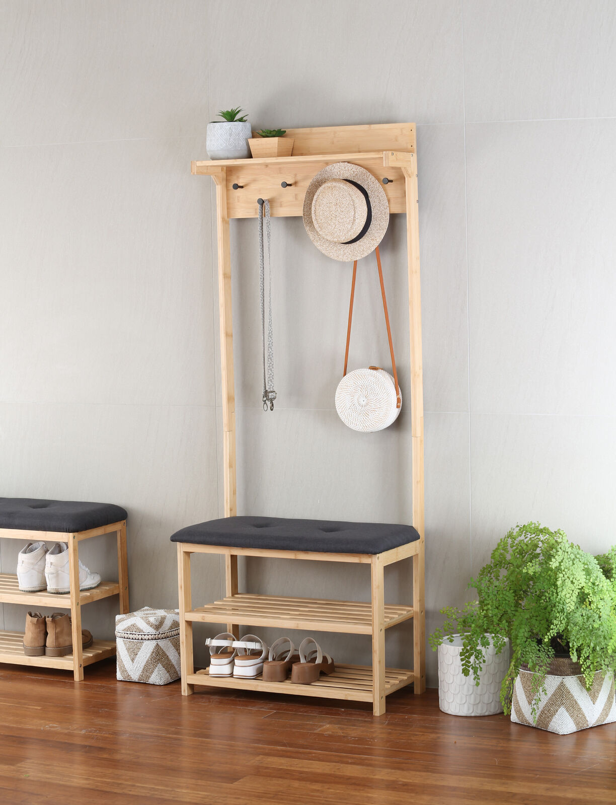Bamboo Hall Stand and Shoe Storage with Charcoal Seat