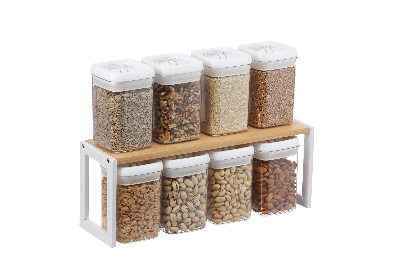 • This shelf will allow you to more than double your shelf space by allowing you to stack ingredients upwards, and prevents items getting lost at the back of the pantry.