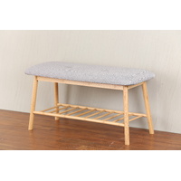 Bamboo Shoe Rack  Bench Seat Storage with Grey Cushion - 900mm