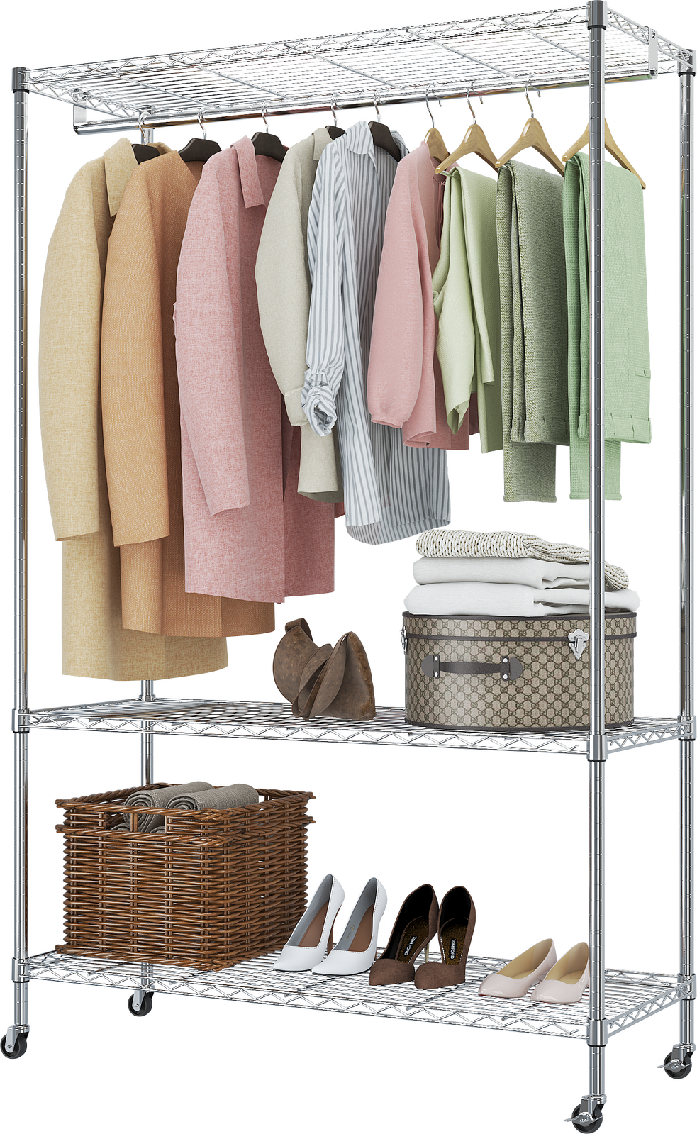 Built with durable wire shelving, this garment rack is designed for long-lasting use.